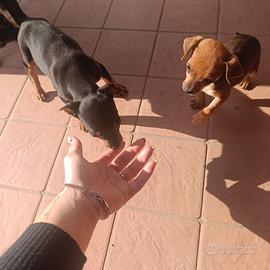 Disponibili cuccioli di pincher nano di 60 giorni. I cuccioli saranno ceduti con 2 sverminazioni e prima visita veterinaria già effettuata. Disponibilità di una femmina nero focato e un maschietto marrone. Chiamare 3248643943 Chiara. Prezzo non trattabile.