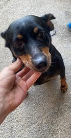 Kira, dolcissima cagnolina di 11 anni, cerca una buona compagnia, ha un pelo nero-caramello. Per altre informazioni contattatemi dal numero posto sull'annuncio.