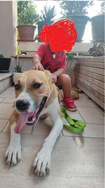 Cediamo a super malincuore la nostra pitbull femmina di quasi 2 anni, super buona, socievole e coccolona, sta con tutti ama specialmente i bambini e va d'accordo con gli altri cani.
