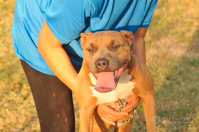 Cucciola di American Pitbull terrier di 7 mesi in standard ukc Red nose. Genitori in foto di altissima genealogia. Possibilità di pedigree mckci con affisso Marvel. Microchip e libretto sanitario completo di vermifugo e vaccino. Spedizione in tutta Italia con corriere professionale. La cagnolina ha un carattere dolce e ubbidiente e molto socievole. Prezzo a partire da 150 euro