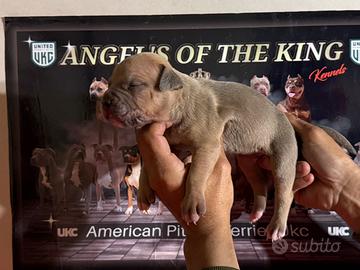 siamo un allevamento in Sicilia. I cuccioli verranno consegnati non prima dei 60 giorni, con pedigree, libretto , certificato di buona salute, test giardia negativo, vaccino, microchip, Verranno socializzati con tutti i cani di supporto presenti nella sede. I genitori sono soggetti SANI, TESTATI, ESENTI MALATTIE GENETICHE EREDITARIE, EQUILIBRATISSIMI E VISIBILI IN ALLEVAMENTO. Un lavoro importante di selezione con la presenza all'interno del pedigree di cani TITOLATI e altamente sani ed EQUILIBRIBATI..L'obiettivo è quello di preservare grandi qualità genetiche per dare vita a soggetti degni rappresentanti della razza American Pitbull Terrier in standard UKC.. La consegna può avvenire IN TUTTA ITALIA, Sarà possibile fare visita ai cuccioli a partire dal 40esimo giorno di vita. La riserva avviene al momento del versamento il resto del pagamento alla consegna. Siamo sempre disponibili a farvi conoscere i nostri cani per orientarvi nella scelta Per info 3298345692 Facebook ALEX CALABRESE Instagram Angels_of_the_king_ufficial