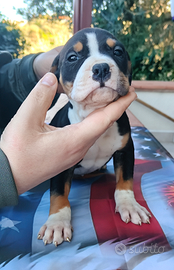 Disponibili alla cessione Cuccioli di american Pitbull terrier in standard ukc di ottima struttura e geologia sono due maschi tricolore nero nati il 24 dicembre saranno ceduti al compiere i 60 giorni di vita con due vaccini vermifugo e certificato di buona salute tutto rilasciato dal veterinario di fiducia cip e pedigree genitori di mio posesso per altre foto o chiarimenti contattatemi tramite whatsapp al 3297035976