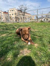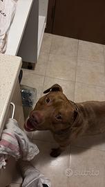 Pitbull Red Nose 2 anni e mezzo - con accessori Testo annuncio: Vendo pitbull red nose di 2 anni e mezzo, in buona salute e abituato al contatto con le persone.meglio solo, sta facendo addestramento Carattere: molto affettuoso con le persone, non aggressivo. Con altri cani tende ad essere dominante, quindi consigliato a chi ha esperienza o come cane unico. Dispone di tutto il necessario: o Pettorina o Guinzaglio o Cuccia o Ciotole o (aggiungi altro se vuoi) Cane attivo, ha bisogno di movimento e di un proprietario che sappia gestirlo bene. Per maggiori informazioni contattatemi in privato.