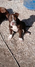 Vendo cucciolo di pitbull maschio di 6 mesi (bianco e marrone con muso bianco) completo di vaccinazioni a 90euro mentre poi c'è femmina di un anno e mezzo (marroncina) al prezzo di 50 anche lei completa di vaccinazioni, non posso piu tenerli.