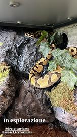 Vendo causa trasloco stupendo pitone reale, pastel sh femmina di 5 anni, con particolarità di assenza di squame sulla testa, ( solo valore pitone 300€) compresa di Cites. Vendo insieme alla teca fatta artigianalmente di ottima fattura compresa di interni e fondale 3d, pannello riscaldante. Prezzo anche trattabile
