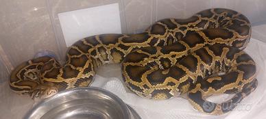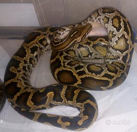 1.0 pitone moluro bivittatus 2023 "4 het "pied, caramel. labirint . albino green" 5 kg di peso mangia 4 cosce di pollo o conigli da 1 kg o 2 ratti da 400 grammi l'uno. bellissimo docile mai un morso pagato 250 euro lo cedo a 150 per urgenza di locazione....non rompimenti di palle... no perditempo....non cercatori di foto....no devo chiedere a mia mamma etc etc ANIMALE DOCILE NON MORDACE. prezzo non trattabile.