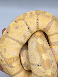 Phyton Regius Femmina 2024 Morph: Banana Pastel Anni: 2024 Peso: 600 gr Alimentazione: decongelato Abituata alla manipolazione con carattere docile e tranquillo. Viene ceduta con regolare documentazione Cites