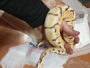Vendo pitone reale femmina colorazione come da foto abituato al cibo decongelato cresciuto con cura con regolare cites. Pesa intorno a 450 grammi Consegna a Cosenza Centro o limitrofi
