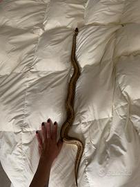 Cedo pitone reale di 3 anni circa, in salute, sempre tenuto nella sua teca da solo. Carattere docile, si fa manipolare senza problemi, mangia solo congelato 2 volte al mese.