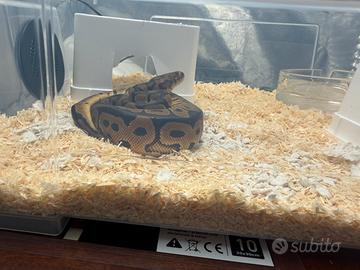 Vendo pitone reale con tappeto riscaldante Contenitore in plastica Scodella in terra cotta Pitone baby 5 mesi con cides