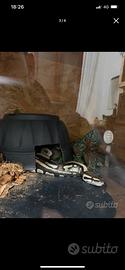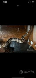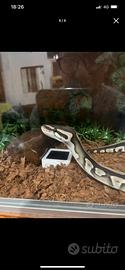 cedo bellissimo esemplare di pitone reale. e' una femmina di 6 anni e ce l ho dal 2022. e' una mystic het clown. non e' assolutamente aggressiva. non ha mai provato a mordere. se serve anche il terrario posso dare tutto completo. sta in un terrario in legno con dimensioni 130x50x40. il terrario e' stato trattato con impregnante e flatting entrambi all' acqua. ovviamente ha anche tutto il necessario ovvero tappetino riscaldante, pannello polionda , termostato, illuminazione. per il prezzo chiedo 150 del pitone e 150 del terrario completo