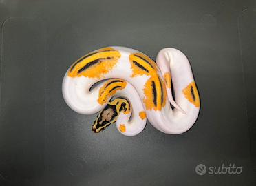 Cedo pitone reale Morph: orange dream yellowbelly pastel pied Sesso: F Anno: 2024 Peso: 254g Mangia decongelato Animale sano e ceduto con regolamentare documentazione CITES NON SCAMBIO CON ALTRI ANIMALI
