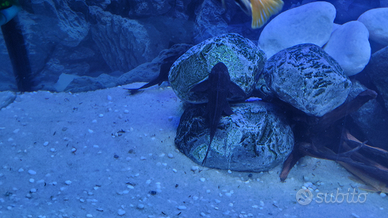 2 Plecostomus Hypostomus , 1 Plecostomus albino circa 3 anni di vita 13/15 cm belli e cresciuti insieme a ciclidi africani adulti malawi.