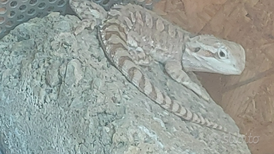 pogona henrylawsoni maschio 1 anno e mezzo di eta' mangia grilli blatte dubia e blatte lateralis animale in perfetta salute questo tipo di animali nel terrario hanno bisogno di spot scaldante bianca (no rossa) e neon uvb al 10% 12 % vedere foto da esempio .....no perditempo massima serieta prezzo animale 150 euro. non trattabile. no perditenpo.