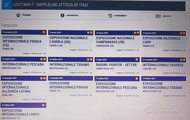 Atticus ha all'attivo importanti risultati in expò, speciali e raduni di razza, le relative qualifiche ottenute possono essere consultate direttamente sul sito dell'ENCI.