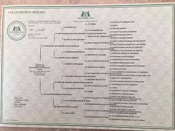 Dappleline Atticus of Italy (Codice Iscrizione Estero AX00723508 - Italiano LO21184917), un soggetto con una genealogia che racchiude le migliori linee di sangue europee. Si allega il pedigree inglese in maniera tale che chi avesse dei dubbi può tranquillamente farsi un'idea... Chi conosce la razza anche oltre i confini nazionali, non avrà difficoltà a capire l'importanza del suo patrimonio genetico.
