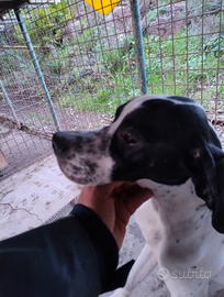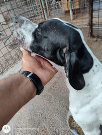 Pointer maschio di un anno con pedigree di alta genealogia gia portato in allenamento per caccia il cane è pronto a iniziare la nuova stagione di caccia figlio di cani che fanno bene pure il cinghiale