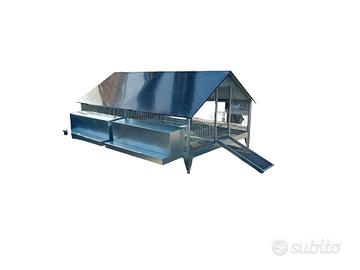 Pollaio di ottima fattura, con telaio robusto in lamiera e rete, entrambe zincate.