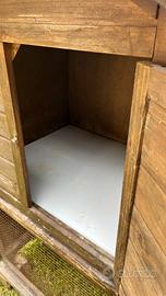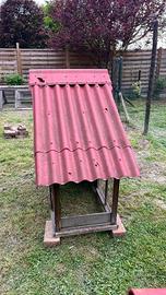 Vendo conigliera usata come pollaio. È stata rinforzata sulle pareti laterali il tessuto e sulla base. Come da foto è in ottimo stato necessita solo una passata di impregnante e la sostituzione delle onduline perché si sono rotte con la grandine. Il prezzo è trattabile.