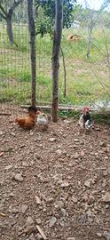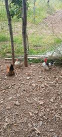 Cedo 2 galline e 1 gallo di razza nana. Le gallinelle cofano di continuo.