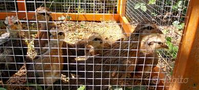Pulcini di un mese, razza olandese nana, colore pernice dorata