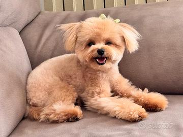 PomaPoo, mamma Pomerania e papà Barboncino Toy, si rende disponibile per accoppiamento. Microcippato, vaccinato etc. Altezza al garrese 20 cm, lunghezza 26 cm, peso 2 kg. Si chiede in cambio un cucciolo o un compenso Max