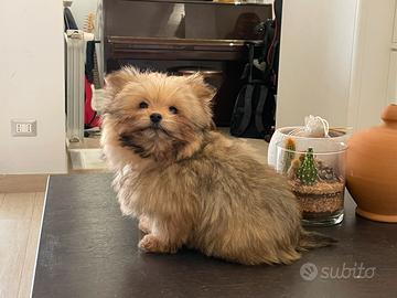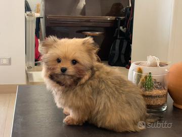 Ultimo cucciolo maschio disponibile nato il 10 ottobre 2025 ; taglia veramente mini max 2 kg da adulto e non otre 20 cm al garrese; mamma spitz pomerania papà avanese ( stessa famiglia dei maltesi unica differenza con questi pelo più ondulato e mantello di vari colori) entrambi i genitori di nostra proprietà hanno pedigree enci; recente incrocio che si caratterizza per docilità, intelligenza e affettuosità; eur 450;