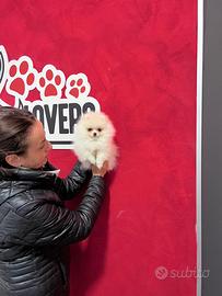 POMERANIA BIANCHI DA NOSTRO ALLEVAMENTO; 3 mesi circa Peso attuale di soli 579 gr dimostrabile con specifico video. LA TAGLIA ADULTA SI RAGGIUNGE A 6 mesi CIRCA, quindi PICCOLISSIMI!!!! LINEE AMERICANE (taglia ridottissima, tronco corto, orecchie piccole e muso schiacciato). ESEMPLARE PERFETTO E DI OTTIMA GENEALOGIA SI CEDE CON: ? pedigree ? microchip ? registrazione all'anagrafe canina ? pass.di proprietà ? sverminazione ? test per il parvovirus ? test per la giardia ? vaccini compatibili con età del cane ? antiparassitario ? garanzia sulla salute e sulla vita ? certificato di buona salute rilasciato da veterinario asl ? prontuario con indicazioni per gestire il cucciolo nei primi giorni a casa ? assistenza post vendita telefonica e whatsapp 24/7 NO FOTO PRESE DA INTERNET! È esattamente la cucciola DISPONBILE! Contattandoci diamo video con data, ora, vostro nome e microchip della cucciola Riceviamo in sede a Pozzuoli (NA) ma offriamo anche servizio diretto di trasporto in tutta Italia, garantendo quindi la sicurezza e la salute dei piccoli pelosi. Per maggiori info contattateci telefonicamente o via whatsapp al 3480165340