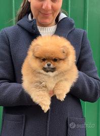 Pomerania FEMMINA FULVA DA NOSTRO ALLEVAMENTO; 2 mesi e 1 settimana - Peso attuale di soli 440 gr dimostrabile con specifico video. LA TAGLIA ADULTA SI RAGGIUNGE A 6 mesi CIRCA, quindi PICCOLISSIMI!!!! LINEE AMERICANE (taglia ridottissima, tronco corto, orecchie piccole e muso schiacciato). ESEMPLARE PERFETTO E DI OTTIMA GENEALOGIA SI CEDE CON: ? pedigree ? microchip ? registrazione all'anagrafe canina ? pass.di proprietà ? sverminazione ? test per il parvovirus ? test per la giardia ? vaccini compatibili con età del cane ? antiparassitario ? garanzia sulla salute e sulla vita ? certificato di buona salute rilasciato da veterinario asl ? prontuario con indicazioni per gestire il cucciolo nei primi giorni a casa ? assistenza post vendita telefonica e whatsapp 24/7 NO FOTO PRESE DA INTERNET! È esattamente la cucciola DISPONBILE! Contattandoci diamo video con data, ora, vostro nome e microchip della cucciola Riceviamo in sede a Pozzuoli (NA) ma offriamo anche servizio diretto di trasporto in tutta Italia, garantendo quindi la sicurezza e la salute dei piccoli pelosi. Per maggiori info contattateci telefonicamente o via whatsapp al 3480165340