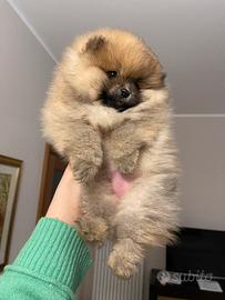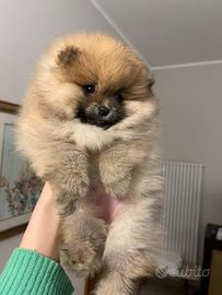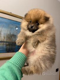 Cucciola di pomerania femmina di due mesi con pedigree Enci microchip sverminazione completa e primo vaccino. Genitori provenienti dalla Russia con ottimi pedigree e dna depositato.