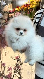 POMERANIA BIANCHI DA NOSTRO ALLEVAMENTO; 3 mesi circa Peso attuale di soli 579 gr dimostrabile con specifico video. LA TAGLIA ADULTA SI RAGGIUNGE A 6 mesi CIRCA, quindi PICCOLISSIMI!!!! LINEE AMERICANE (taglia ridottissima, tronco corto, orecchie piccole e muso schiacciato). ESEMPLARE PERFETTO E DI OTTIMA GENEALOGIA SI CEDE CON: ? pedigree ? microchip ? registrazione all'anagrafe canina ? pass.di proprietà ? sverminazione ? test per il parvovirus ? test per la giardia ? vaccini compatibili con età del cane ? antiparassitario ? garanzia sulla salute e sulla vita ? certificato di buona salute rilasciato da veterinario asl ? prontuario con indicazioni per gestire il cucciolo nei primi giorni a casa ? assistenza post vendita telefonica e whatsapp 24/7 NO FOTO PRESE DA INTERNET! È esattamente la cucciola DISPONBILE! Contattandoci diamo video con data, ora, vostro nome e microchip della cucciola Riceviamo in sede a Pozzuoli (NA) ma offriamo anche servizio diretto di trasporto in tutta Italia, garantendo quindi la sicurezza e la salute dei piccoli pelosi. Per maggiori info contattateci telefonicamente o via whatsapp al 3480165340