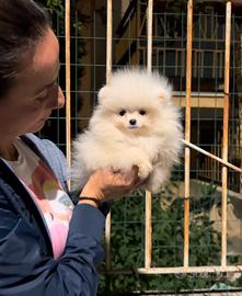 POMERANIA BIANCHI DA NOSTRO ALLEVAMENTO; 2 mesi e 20gg Peso attuale di soli 460 gr dimostrabile con specifico video. LA TAGLIA ADULTA SI RAGGIUNGE A 6 mesi CIRCA, quindi PICCOLISSIMI!!!! LINEE AMERICANE (taglia ridottissima, tronco corto, orecchie piccole e muso schiacciato). ESEMPLARE PERFETTO E DI OTTIMA GENEALOGIA - NONNO 4 volte campione internazionale e riproduttore selezionato SI CEDE CON: ? pedigree ? microchip ? registrazione all'anagrafe canina ? pass.di proprietà ? sverminazione ? test per il parvovirus ? test per la giardia ? vaccini compatibili con età del cane ? antiparassitario ? garanzia sulla salute e sulla vita ? certificato di buona salute rilasciato da veterinario asl ? prontuario con indicazioni per gestire il cucciolo nei primi giorni a casa ? assistenza post vendita telefonica e whatsapp 24/7 NO FOTO PRESE DA INTERNET! È esattamente la cucciola DISPONBILE! Contattandoci diamo video con data, ora, vostro nome e microchip della cucciola Riceviamo in sede a Pozzuoli (NA) ma offriamo anche servizio diretto di trasporto in tutta Italia, garantendo quindi la sicurezza e la salute dei piccoli pelosi. Per maggiori info contattateci telefonicamente o via whatsapp al 3480165340