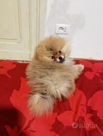 SUBITO DISPONIBILE. Cucciolo di 2 mesi, razza volpino pomerania TOY. Colore orange, tipo orsetto, muso schiacciato. Ha libretto sanitario, certificato di buona salute, vaccino, chip. Nato da entrambi genitori con PEDIGREE ENCI. Razza pura, da adulto 2kg. Nato e cresciuto in casa. Abituato alla traversina, bambini, gatti e cani. Contattare per vedere e prendere il cucciolo. TEL - WHATSAPP - 379 321 9350. No perditempo Prezzo 1500