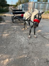 Poni maschio intero 6 anni molto bravo nn morde nn scalcia bravo sotto calesse , vendo anche calesse é finimento
