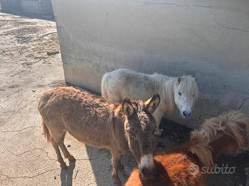 Vendo come da titolo poni razza falabella bianco + asino taglia piccola, entrambe femmine.