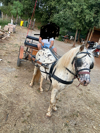 Disponibile pony appaloosa intero di 9 anni, altezza 110 cm al garrese, domato sia a sella che calesse e ottimo riproduttore in quanto trasmettitore del mantello. Per ulteriori informazioni contattare telefonicamente. Prezzo leggermente trattabile.
