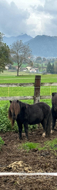 Sono due pony un maschio e una femmina morelli molto belli... Abituati all'aperto con filo e doma da terra per qualsiasi info contattatemi ,abituati a vivere in coppia ( prezzo 500 l'uno 900 la coppia )