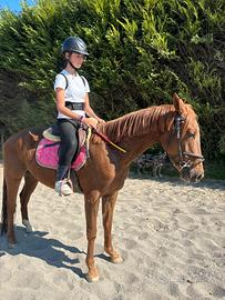 Doppio pony castrone 145 al garrese. 6 anni Facile gestione adatto a tutti Non é né caldo né freddo, super regolare anche in percorso. Montato già da scuola. Uscito anche in training da 70/80 Richiesta un po più bassa di ciò che merita perché a volte in box presenta il ballo dell'orso . Gestito giorno fuori a paddock e solo notte in box non balla.
