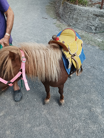 Pony femmina di 7 anni addestrata a sella molto bella e brava con i bambini con documenti.