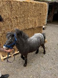 Pony femmina appaloosa h 92 cm bravissima da terra e bravissima montata e attaccata. Ideale giri pony sempre usata con bambini . 17 anni documento in regola . Possibilità di trasporto limitrofo previo accordo . Abituata con capre e asini