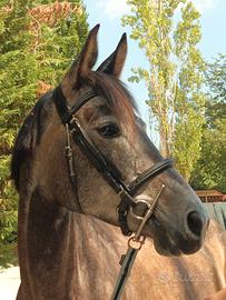Pony femmina di 5 anni , 1,46 al garrese. Attualmente impegnata in categorie 80, in lavoro per partecipare a categorie superiori . Seria da terra e montata ,equilibrata e senza vizi .