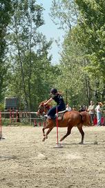 Buongiorno vendo ,per passaggio ad altro pony più alto , pony femmina saura, h1.38 del 2020 Bravissima per la scuola e in passeggiata, Ha partecipato a gare ludiche, in mounteg games fino alla categoria under 18 e ha fatto gare di salto in Lp 40-50, Attualmente scuderizzata presso il centro ippico dell'Alba , in regola con tutti i vaccini . prezzo in privato.