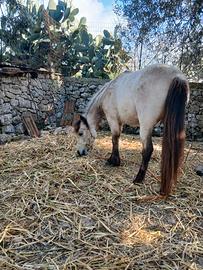 Vendesi spettacolare e unica nel suo genere pony di 1,12 al garrese, manto buckskin molto particolare. Non è domata porta solo la capezza, età quasi 3 anni. Astenersi perditempo o affaristi, prezzo 1,500€ non trattabili, non fatemi perdere tempo che ho poca pazienza. Non vendo per esigenze economiche o per fare spazio quindi non ho fretta a vendere.