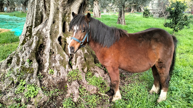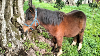 Pony shetland 30 mesi 100 cm al garrese già sellato e facile da gestire ..sta legato al pascolo alla corda ..soggetto mansueto e docile..vendo o scambio con altri animali