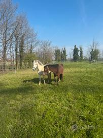 Bellissimi pony Welsh per bambini vanno sia montati che attaccati