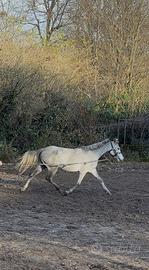 Pony di 5 anni alta 135cm , inizio doma ma super brava sia da terra che montata molto collaborativa al lavoro , predisposta al salto e dressage per info tel al 3331377815