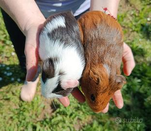 Cedo ultimi due esemplari giovani di cavia peruviana/ porcellini d'india. Sono nati e cresciuti insieme e vanno d'accordo tra loro. Abituati a vivere sia all'aperto che in casa Entrambi a pelo corto, morbidissimi. Il prezzo per entrambi è 20 euro e preferirei cederli in coppia essendo animali molto socievoli, ma valuto anche un adozione singola. Disponibile consegna solo in giorni specifici anche a Firenze, Cecina, Piombino o Portoferraio. Data da concordare I piccoli sono nati dai miei esemplari, se interessati posso inviare le foto dei genitori. Per qualsiasi domanda resto a disposizione
