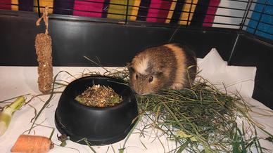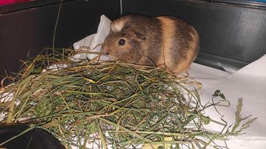 Vendo una cavia, una femmina tranquilla e ben educata di nome Stellina. Non ha mai morso in vita sua. Ha circa 2 anni. È introversa. È molto strano, ma si trova benissimo da sola. Prezzo: 10 euro; 25 euro con gabbia. Salviette umidificate per la pulizia e un rotolo di carta sono inclusi.