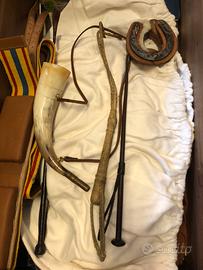 Portaborse da cavallo Coperta Sottosella 3 Frustini Corno da guerra Bendaggi per cavalli Ferri vari Ferro da cavallo Vendo anche singolarmente