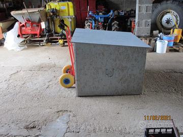 Causa cessata attività venatoria Vendesi portantino x n° 4 cani 1.10x1.00 telaio in robusti listelli in legno assemblati con vitoni e angolari metallici, rivestimento in pannelli in legno da mm. 8 verniciati e fissati al telaio con viti, apertura a due ante completo di maniglie per il carico su mezzi. Nuovo perchè usato solo una volta.